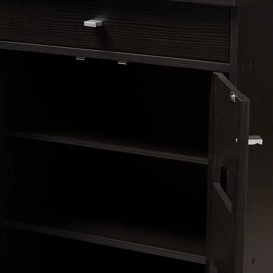 This Acadia shoe cabinet from Baxton Studio is both a functional and bold addition to your entryway or mudroom.