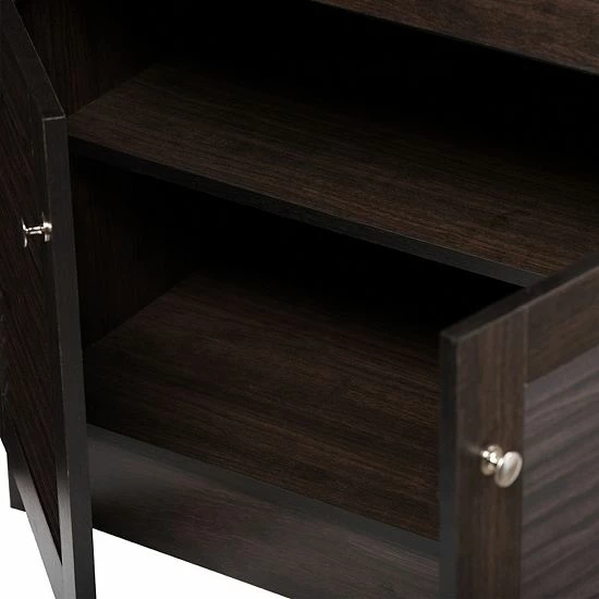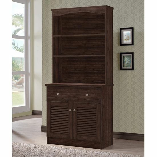 Show off your best glassware, porcelain and more from this Baxton Studio kitchen cabinet’s handsome hutch.