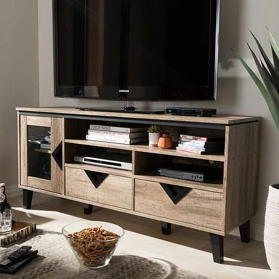 The geometric accents on this Baxton Studio Cardiff TV stand make it a stylish must-have.