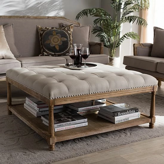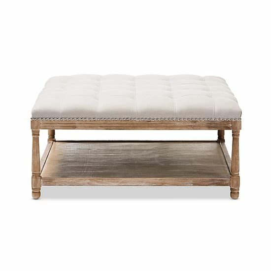Inspired by French country design, this rustic ottoman coffee table from Baxton Studio is both stylish and functional.