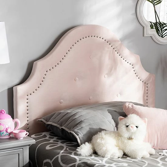 This tufted headboard by Baxton Studio features a nail head trim for a glamorous look.