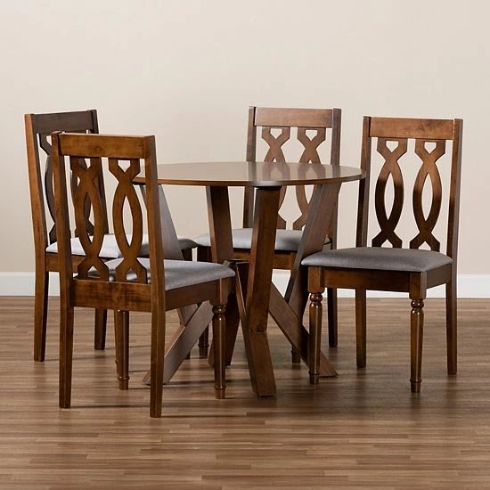 Give your dining room a makeover with this Baxton Studio Elaine Dining Table & Chair 5-piece Set.