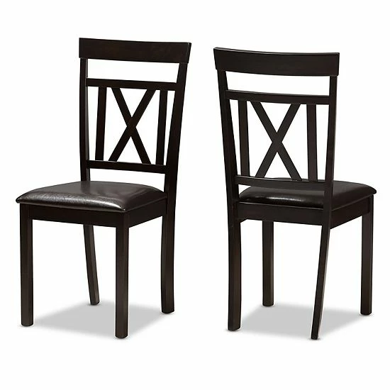 Contemporary style abounds on this faux-leather Baxton Studio Espresso Modern Dining Chair 2-piece Set.