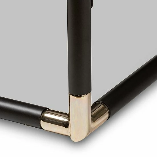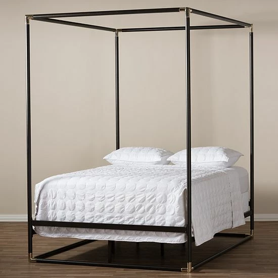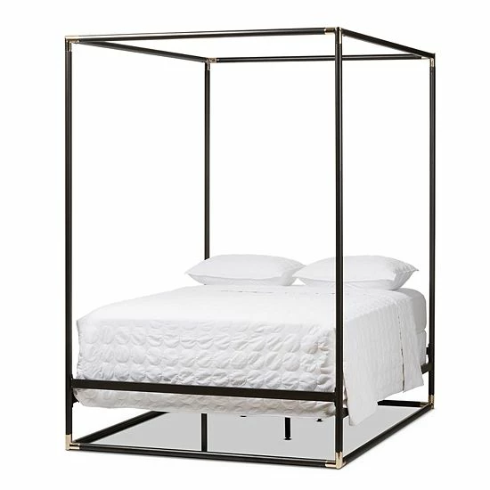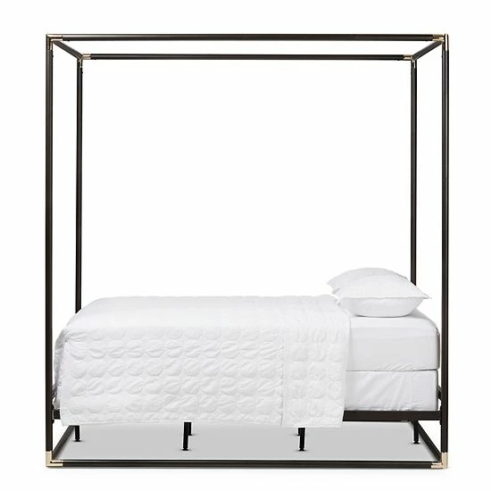 Add metallic details to your bedroom with this Baxton Studio Eva canopy queen bed.