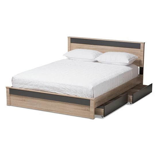 Bring simple style to your home with this charming Baxton Studio Jamie storage queen platform bed.