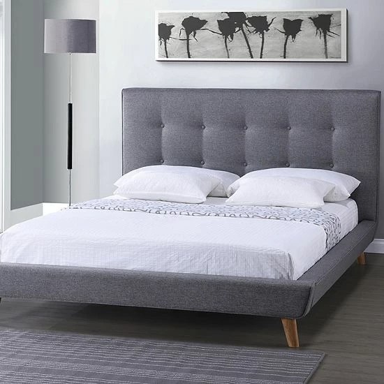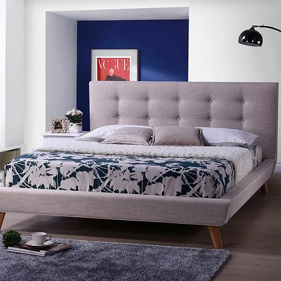 Contemporary and trendy, this Baxton Studio Jonesy upholstered bed is the perfect choice for your bedroom.
