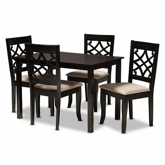- Table: MDF Chairs: Fabric Linen Polyester, Rubberwood, Foam