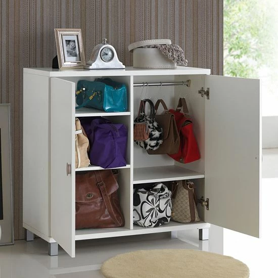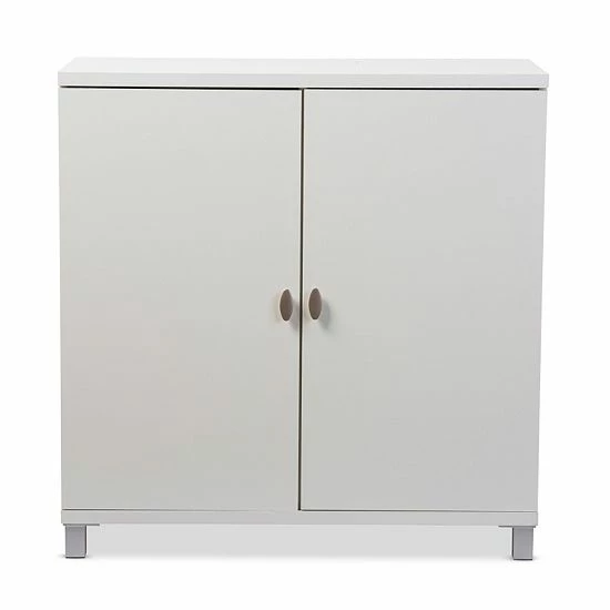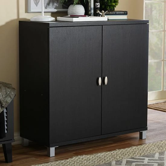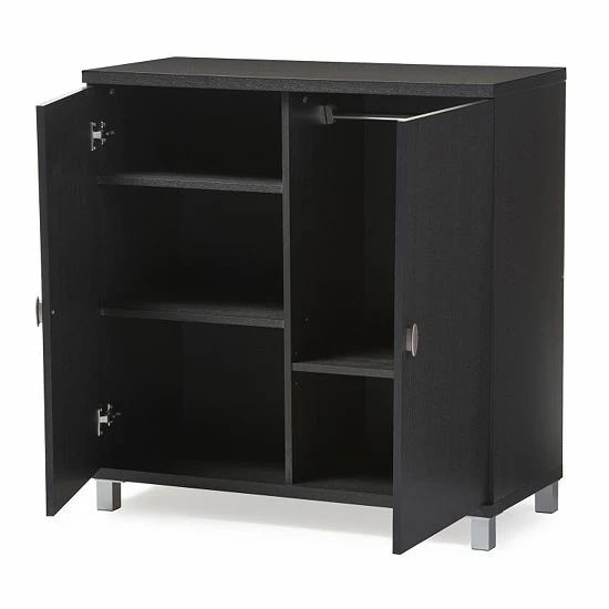 Expand your storage space with this slick cabinet from Baxton Studio, with five interior shelves and coat hooks to double as a miniature closet and more.