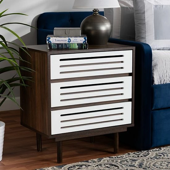 This Baxton Studio Meike Nightstand Table sets the scene for a stylish space.