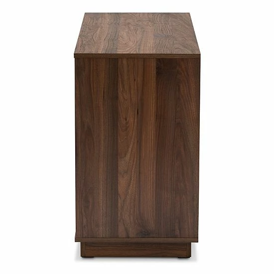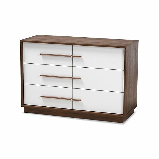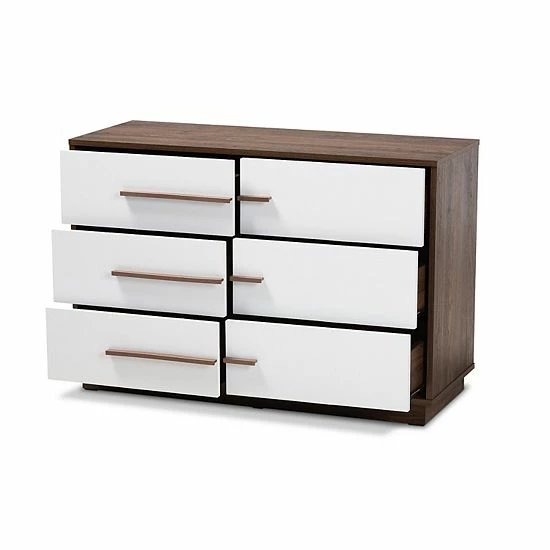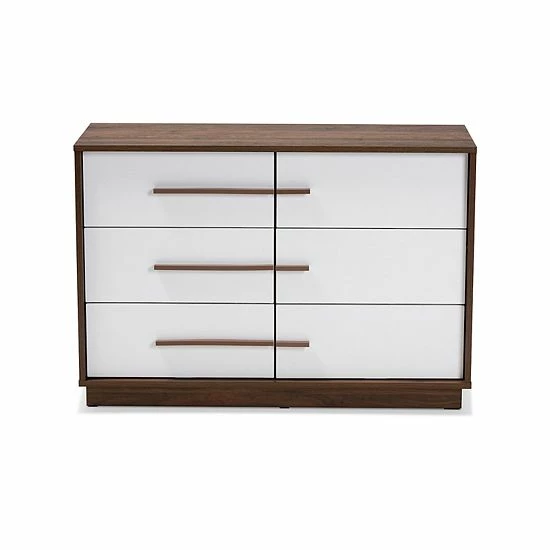 The Mette Medium Brown Dresser from Baxton Studio is the perfect size for providing additional storage in any room.