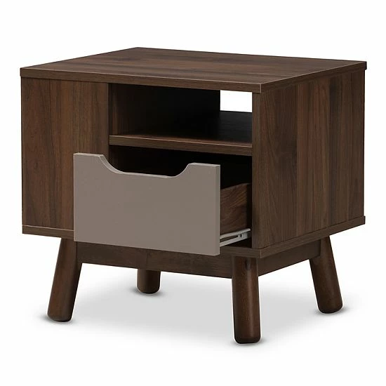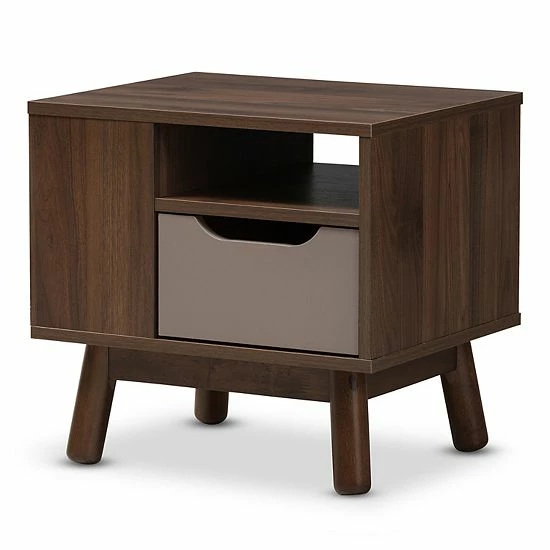 Contemporary style abounds on this Baxton Studio Mid-Century Two-Tone Nightstand.