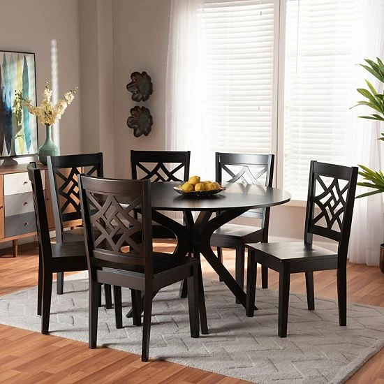 Your guests will feel right at home when entertaining with this Baxton Studio Miela dining 7-piece set.