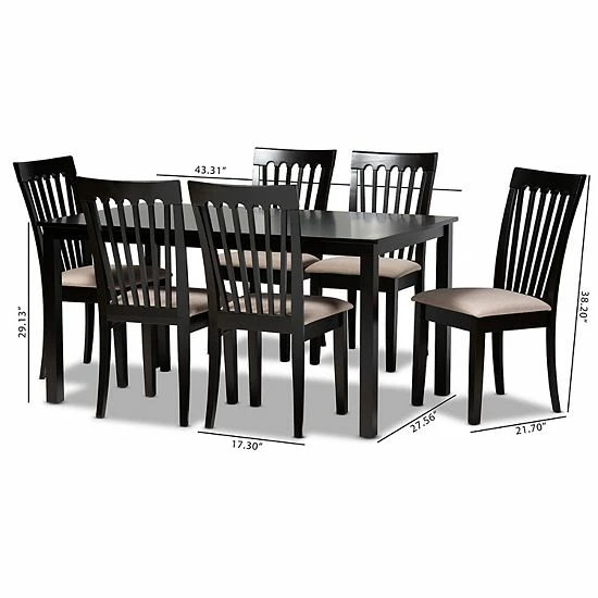 - Six dining chairs: 38.2″H x 17.3″W x 21.7″D (each)