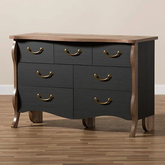 This black dresser has a two tone finish that makes it a versatile piece for your space.