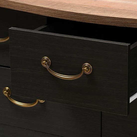 - Black and oak brown two-tone finishing
