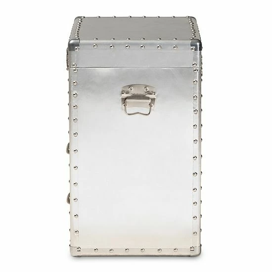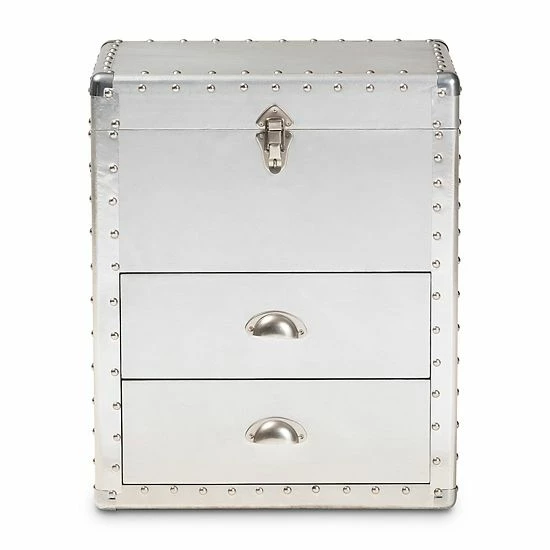The stylish industrial storage cabinet with a metallic finish is great for a modern touch of style to any room of the house.