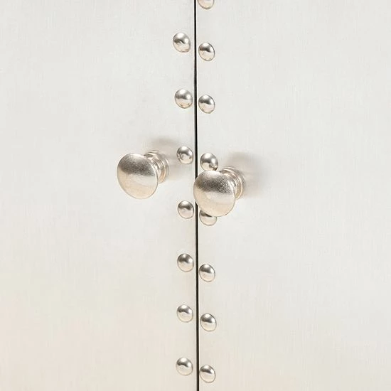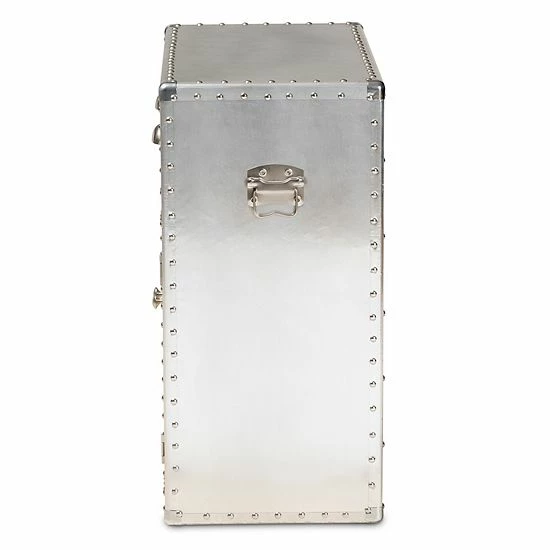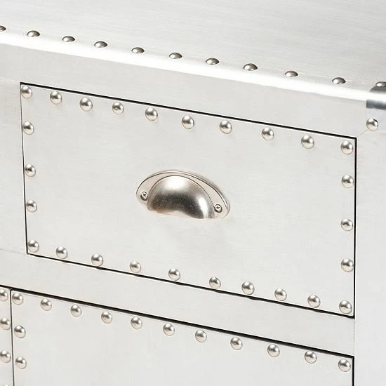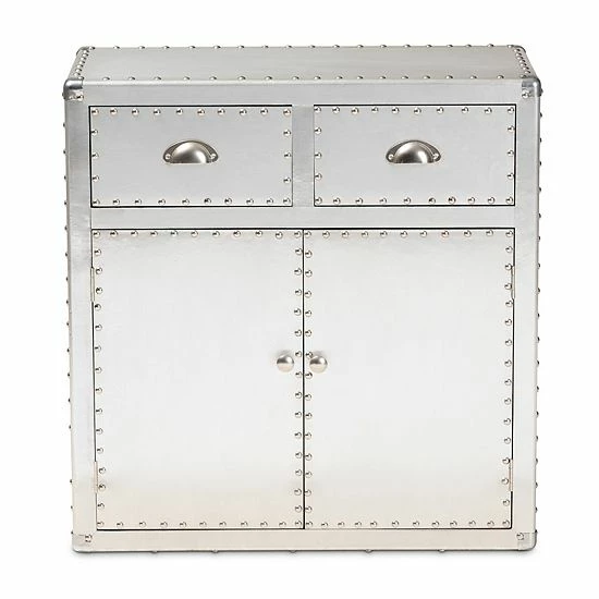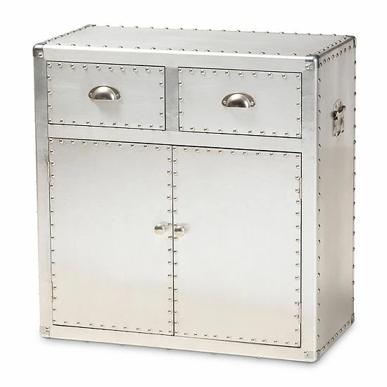 The stylish industrial cabinet with a metallic finish is great for a modern touch of style to any room of the house.