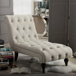 Baxton Studio Layla Mid-Century Modern Chaise Lounge Light Beige