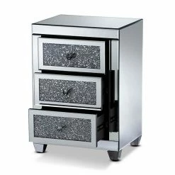 Baxton Studio Stella Crystal Tufted Upholstered Modern Nightstand Black